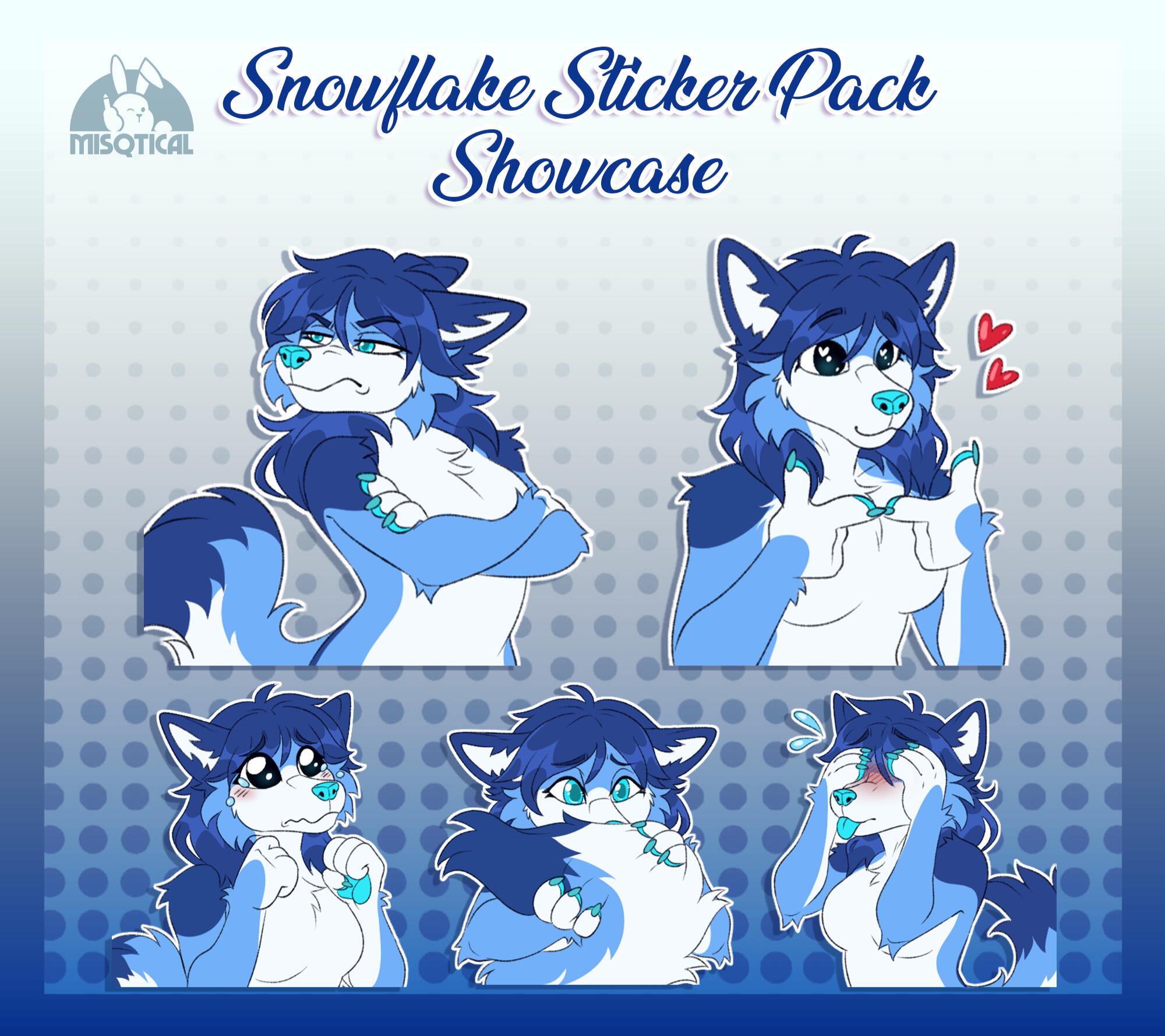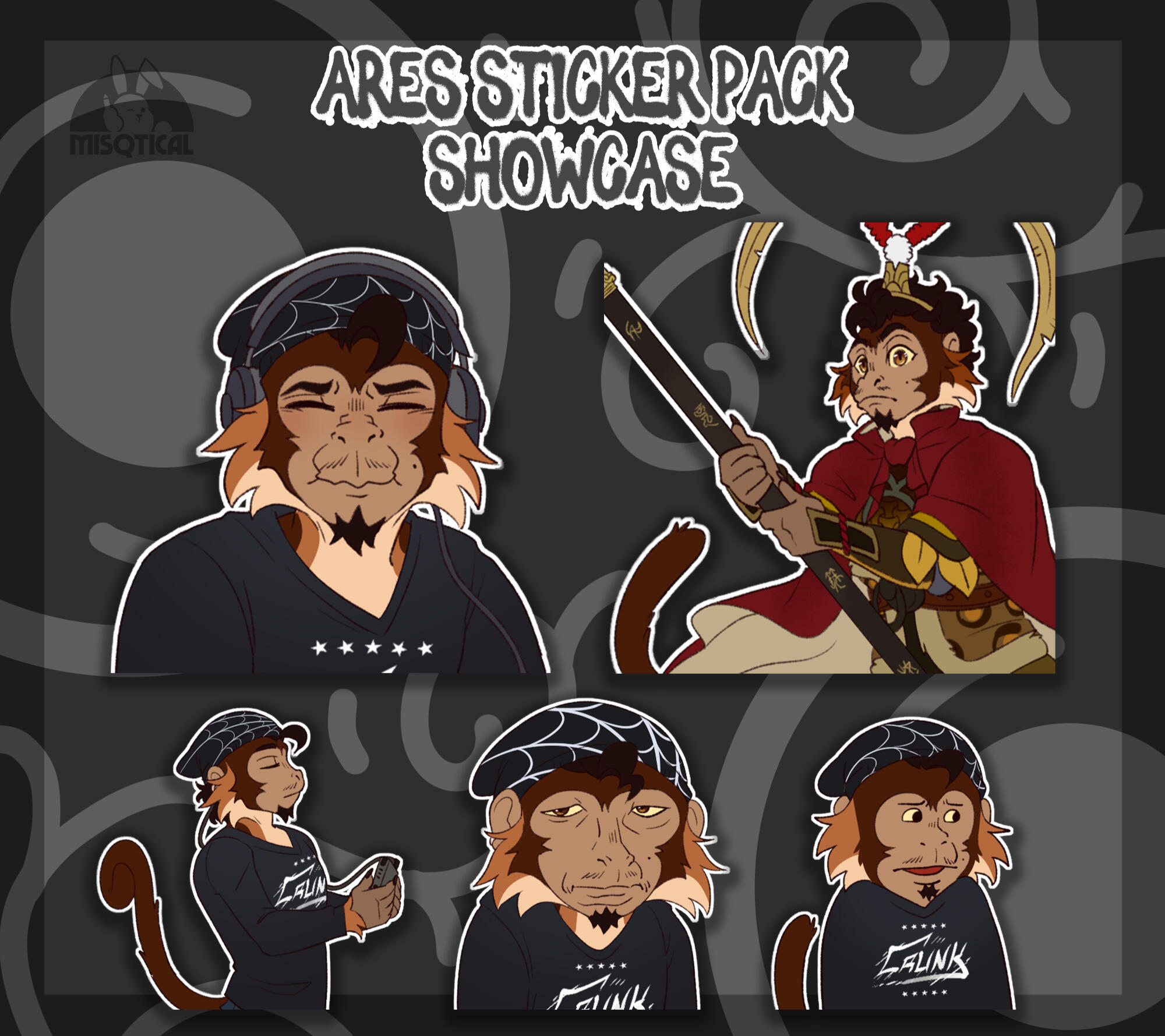 A sticker pack includes 5 flat color, halfbody stickers!